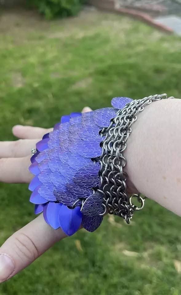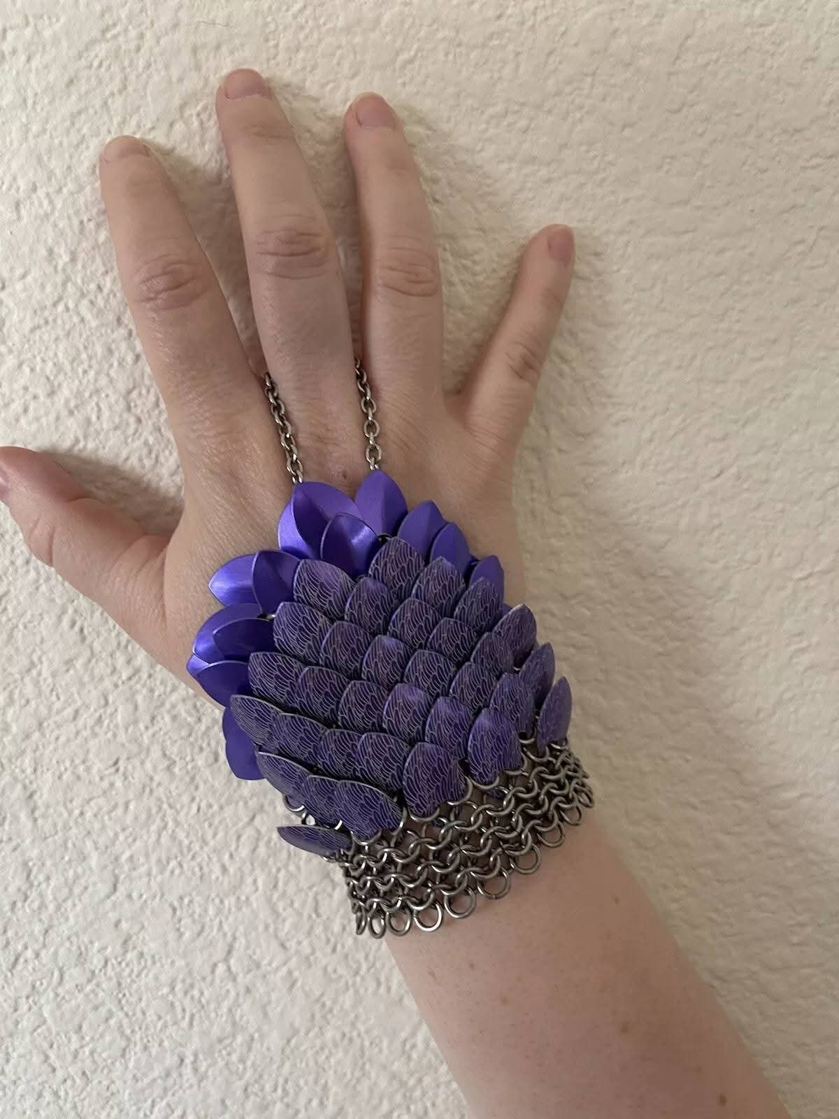 Purple Metal Feather/Dragon Scale Hand Mail Jewelry Chainmail Armour Steels