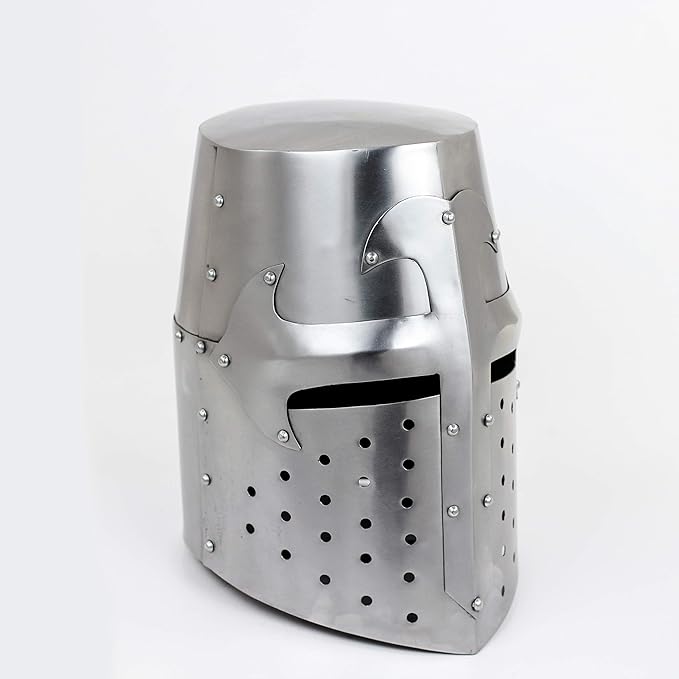 Step into the world of knights and Crusaders with this Medieval Great Helm Crusader Steel Helmet. Expertly crafted from high-quality mild steel with a brushed polished finish, it captures the iconic design of the 12th–13th century great helm. Perfect for LARP events, cosplay, theater performances, or Halloween, this helmet brings historical authenticity and style to every adventure.