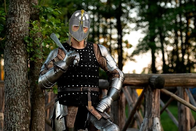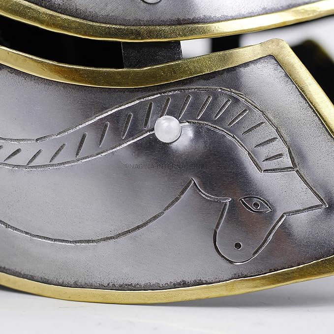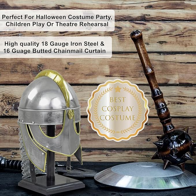 Step into history with this Medieval Barbuta Visored Helmet, crafted in a brushed steel finish to resemble authentic Knights Templar and Crusader armor. Designed for cosplay, LARP, Halloween, or historical reenactments, this helmet features a movable visor for realistic medieval battle style. Lightweight yet sturdy, it’s perfect for both display and immersive roleplay, adding a touch of historical authenticity to your costume collection.