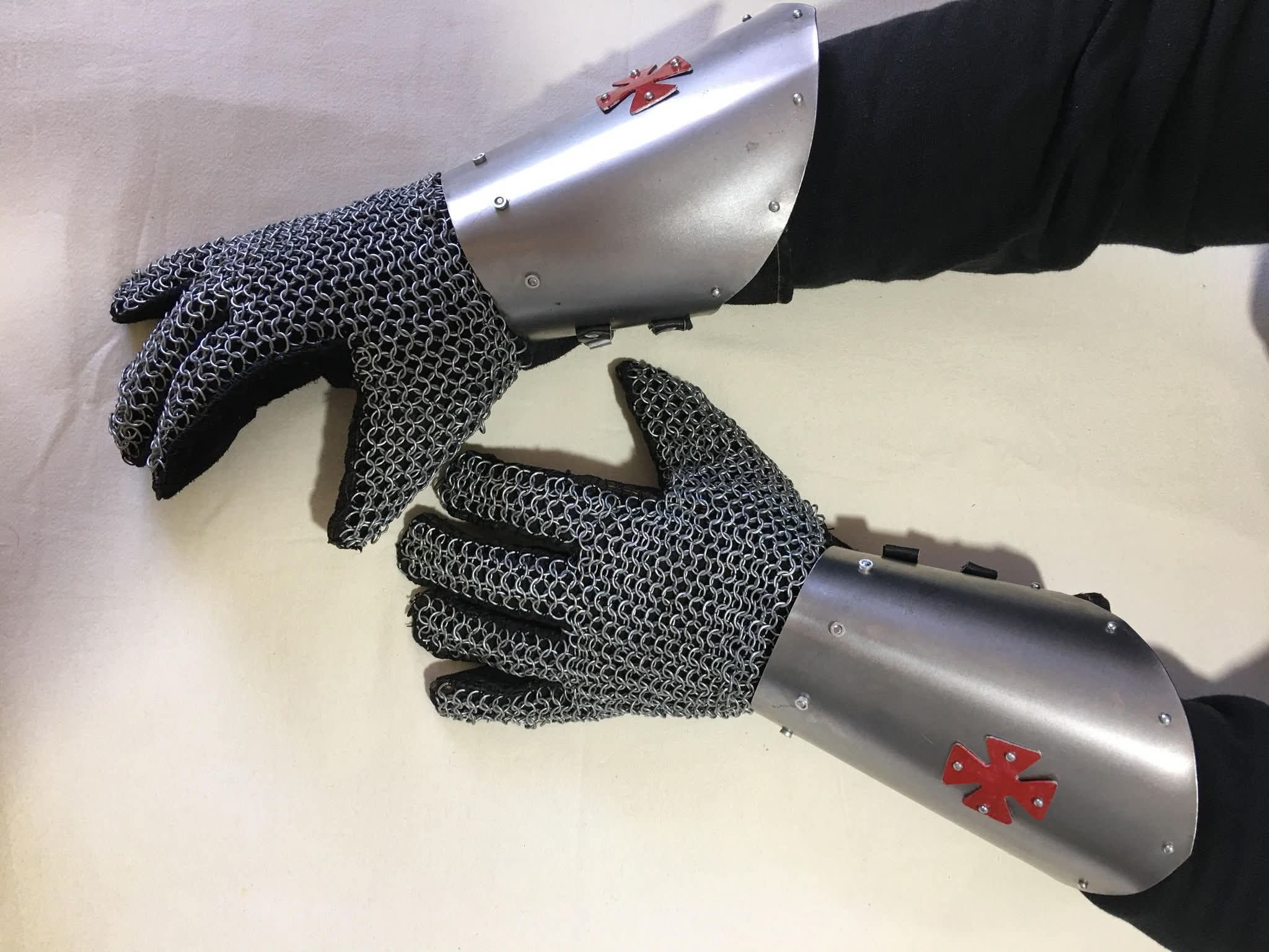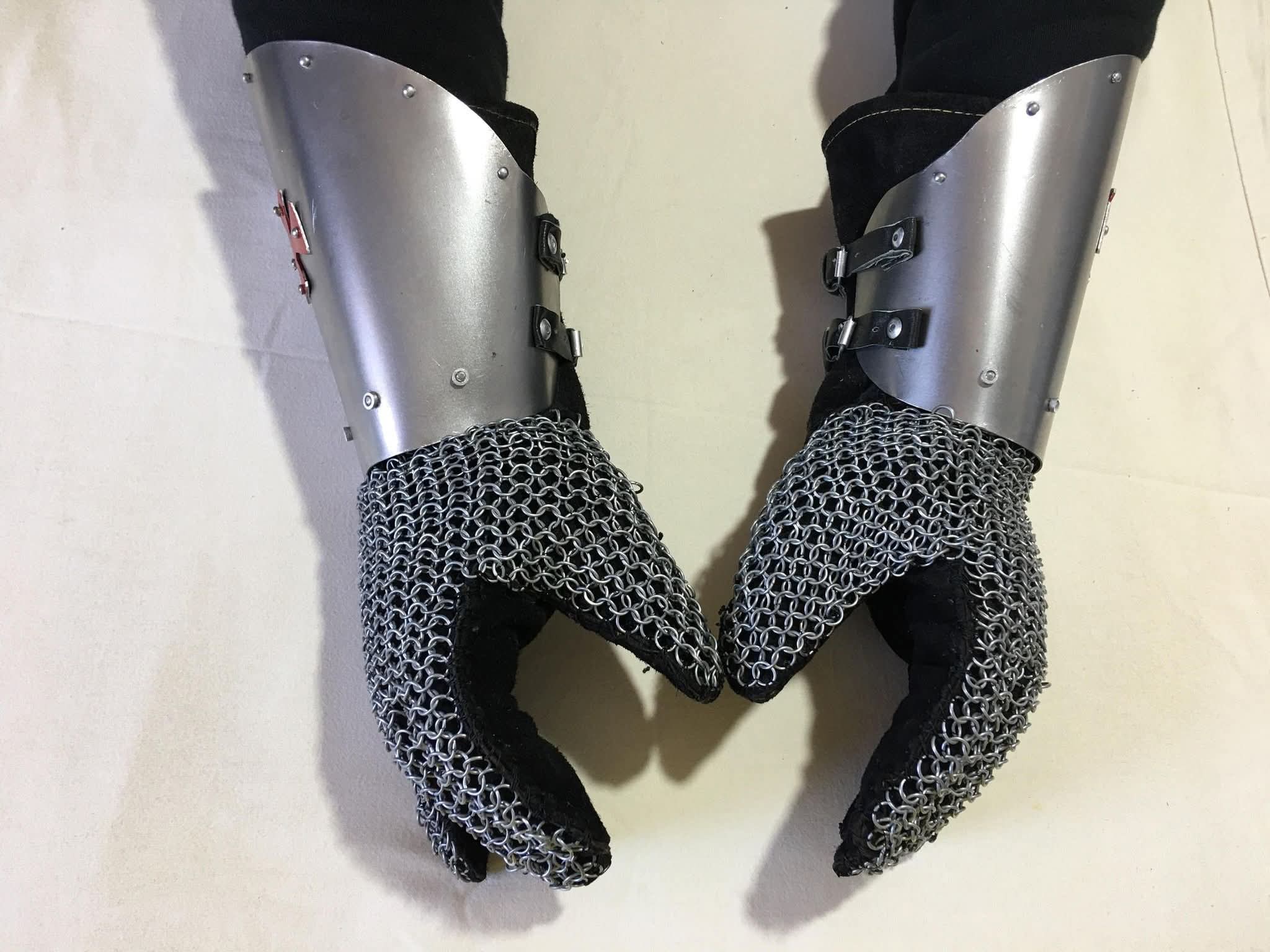 Medieval inspired chain link gloves, with forearm protectors, wire